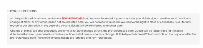 Please note Waterville Lift ticket policy as shown below: